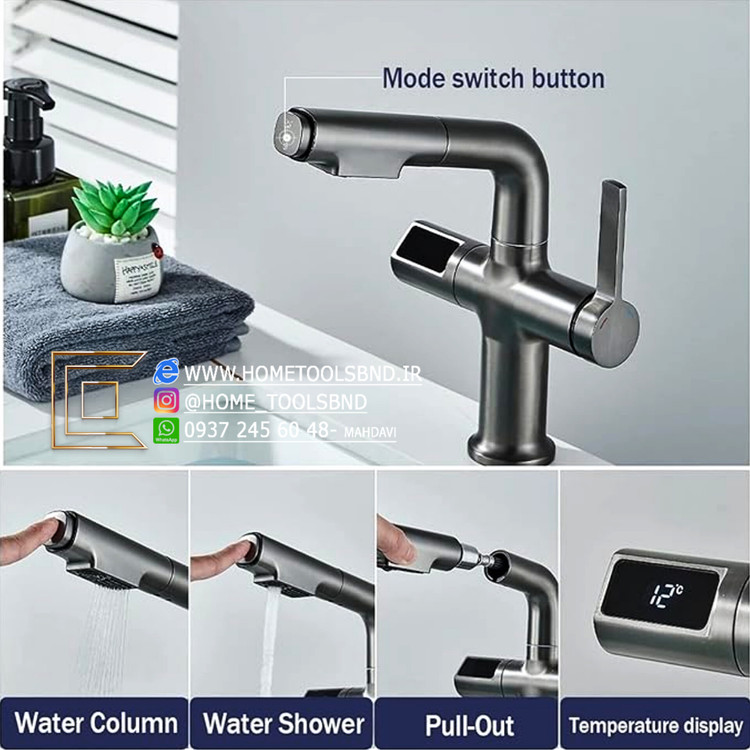 شیر روشویی نمایشگردار شاوری دو حالته مدل آسانسوری برند Huadiao