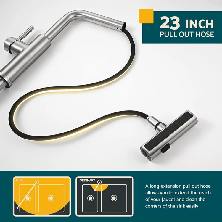 شیر ظرفشویی 4 حالته چندمنظوره 60 سانت هوادیائو: این شیر ظرفشویی با چهار حالت مختلف، امکان انتخاب بهترین گزینه را برای شما فراهم میکند. چه بخواهید ظروف را بشویید یا آب را پر کنید، این شیر خدمات خود را به بهترین نحو ارائه میدهد.